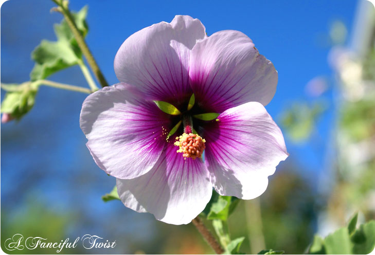 I love that beautiful hibiscus-like magenta centred flower, what is it?