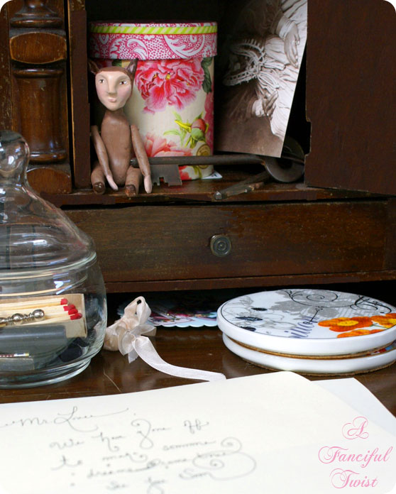 Aaaaaah! Big sigh! What a lovely post! It really doesn’t seem fair for you to be so wonderfully talented in the world of creation and be able to express yourself so incredibly! I loved your words and the pictures that illustrated it. You know you really should do a book someday, a childrens maybe? I know in your spare time! Let’s see, what give me peace and helps me be me? I would have to agree, it is the stolen little moments of creating something. Mine usually come late at night. I actually love creating then. My house is so nice and quiet, my precious littles are snug in thier beds looking sweeter than they usually do in their waking hours. My lovely man is usually asleep, but still makes me feel nice and safe in the quiet house. And those couple of hours are all mine! I don’t clean or do laundry or any of that yucky necessary business. I paint my little painting, or sew or make little dollies and watch movies I like. I can’t imagine who I would be if I didn’t do this at least several times a week. Probably someone nicer to be around because I would have more sleep! Ha! Ha! Thanks for making me think a minute! Have a lovely day!