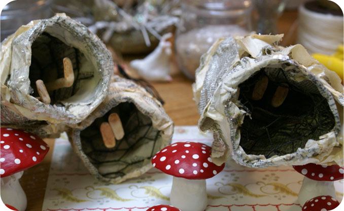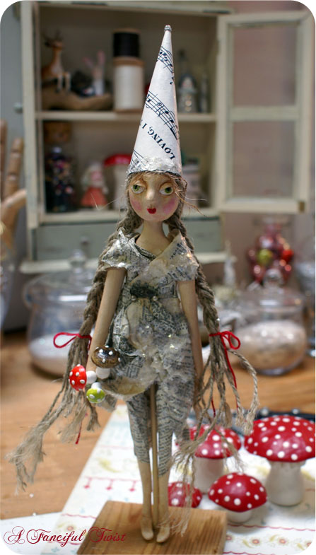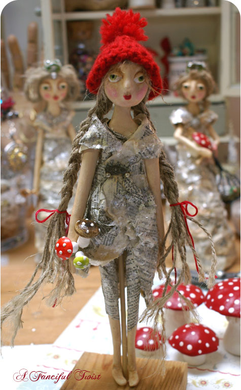 oh oh OH! I LOVe your dolls, my Dear!! And those wee mushrooms with such details! And your paper dress paintings, and, and…..it goes on and on, your magic!! 🙂