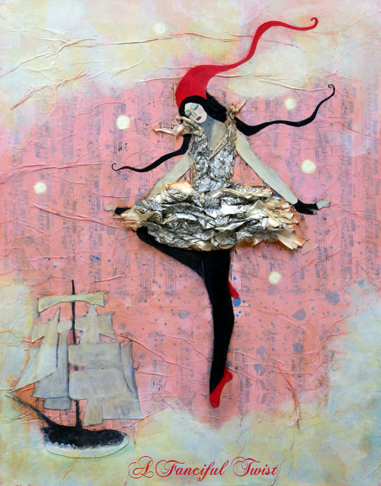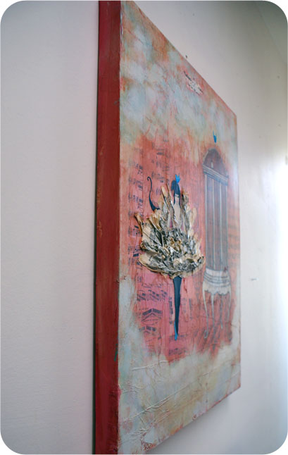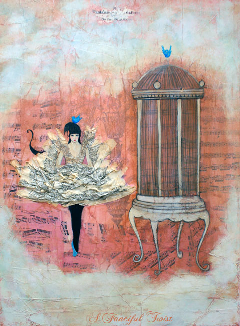 and I love the bird girl escapes! the little bits of blue stand out and are just wonderful. I hope that one day we will be able to procure one of your original paper dress girl paintings for our home, it would be well loved.