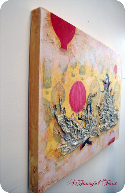You AMAZE me!!!! I want to come over and play with these beauties and the tale you have told is delightful, whimsical and lovely! The canvas pieces are to die for the colors, composistion and overall fluidity is gorgeous my friend!
