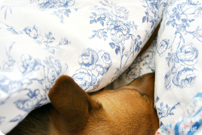 Early morning brings a glimmer of light through the windows. It's the same every morning. A puppy stands by her bedside, making squeaky noises until she ever so slightly opens her covers and he jumps in. They cuddle. It's the warmest place on earth, cuddled up next to her furry child.