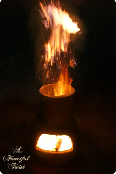 The first bit of Magical Wish potion was tossed into the flame. Would it work? Mister Lovee and I looked on, not knowing what to expect.