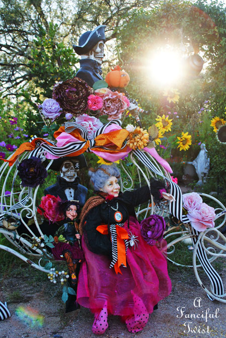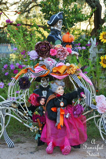 Absolutely charming party! It was over the top! I love all of your character dolls and spectral ghouls. All of the sweet goodies looked scrumptious. As always such a fabulous array of embellishments and your lights and the carriage was simply jolly!
