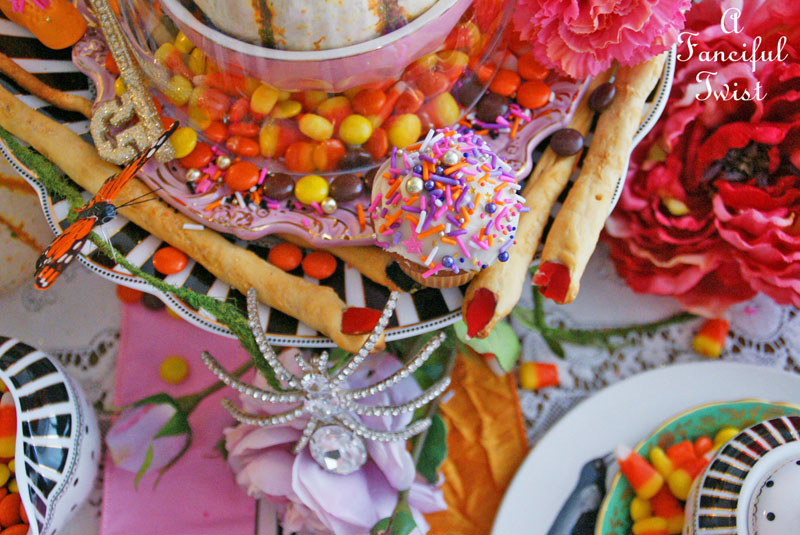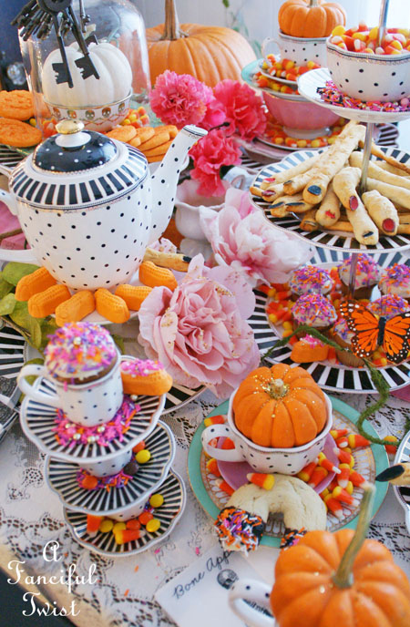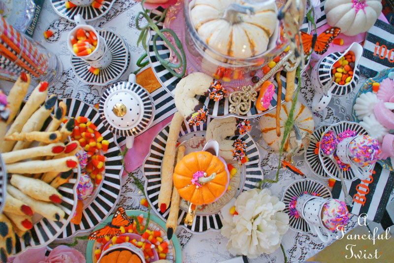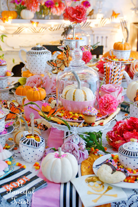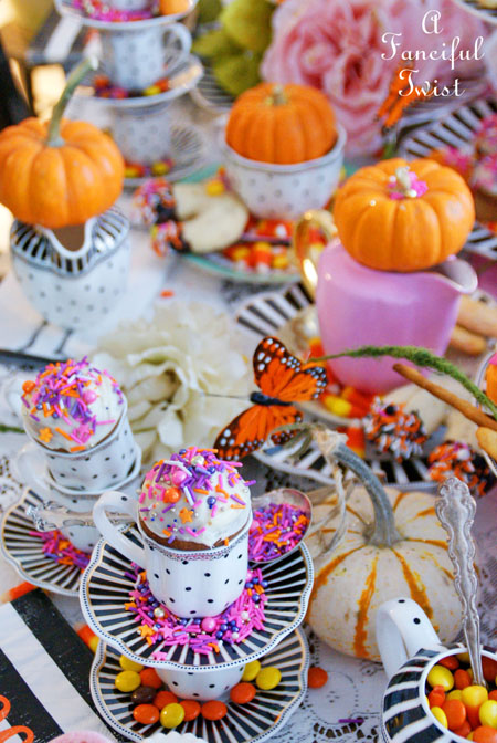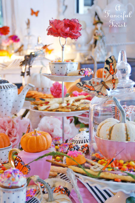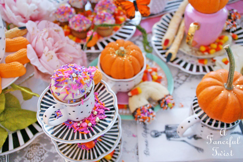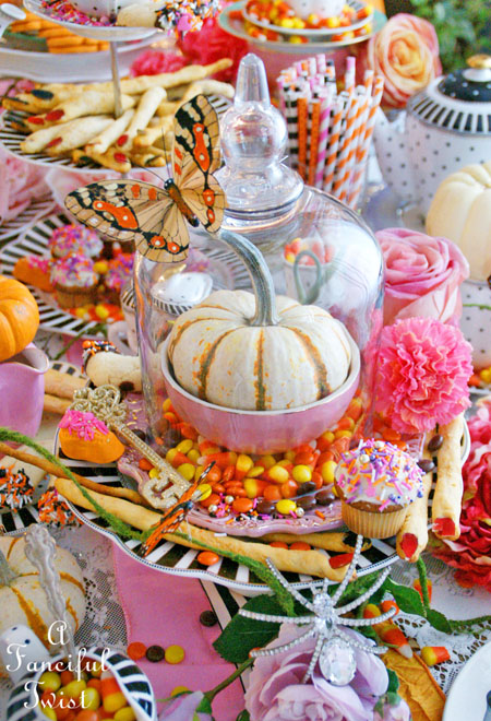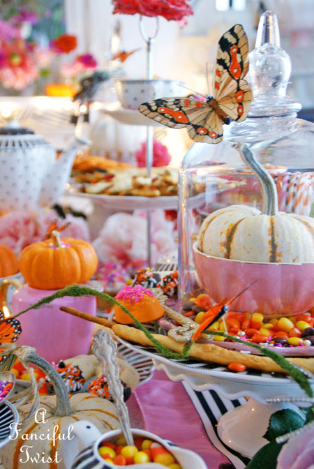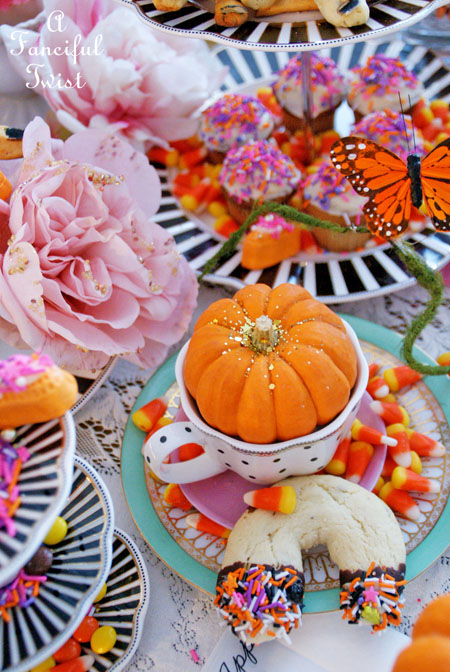 Your tea parties NEVER disappoint Vanessa! That table is over-the-top gorgeous! Love all of the pink and orange. I also love your use of glitter! My favorite accessory. smile! Thanks for hosting this fabulous tea! Happy Halloween!